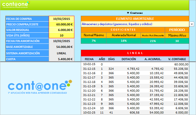 1.- CALCULADORA. Automáticamente calcula la dotación anual y genera la tabla de amortización correspondiente a la vida útil.
