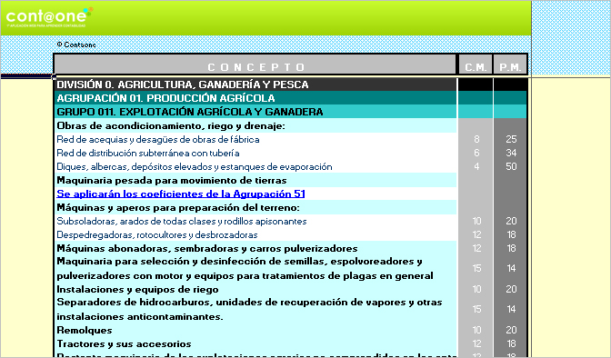 Esta pestana contiene un desplegable que, seleccionando uno de los epígrafes de la Nueva Tabla de Amortización 2015 facilita automáticamente los coeficientes máximos de amortización autorizados (normal, acelerada y empresas de reducida dimensión y el plazo.